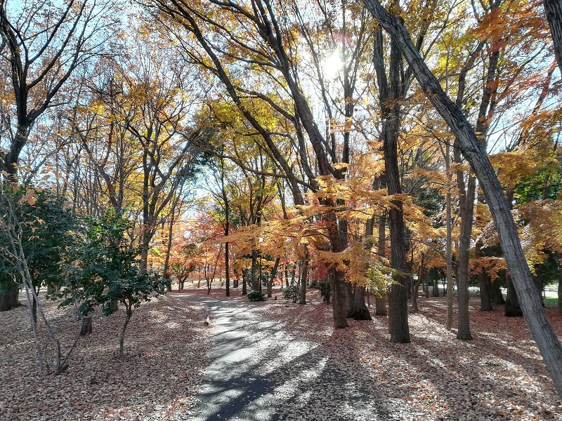 建物は、逆光で影になっていますが、背景の紅葉は色鮮やかに撮れています。